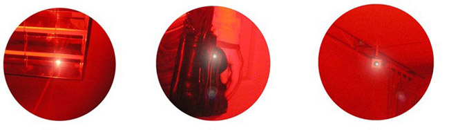 • Дальность обнаружения камер и видеожучков — до 5-20 метров! Столь высокая дальность обнаружения (обычно подобные приборы эффективно работают в пределах 2-8 метров) обусловлена тем, что применены сверхяркие излучатели света красного спектра (общая мощность — 280 кандел). Благодаря такому конструкторскому решению удалось увеличить дальность действия прибора в 2,5 раза (!), по сравнению с обычными детекторами скрытых камер.