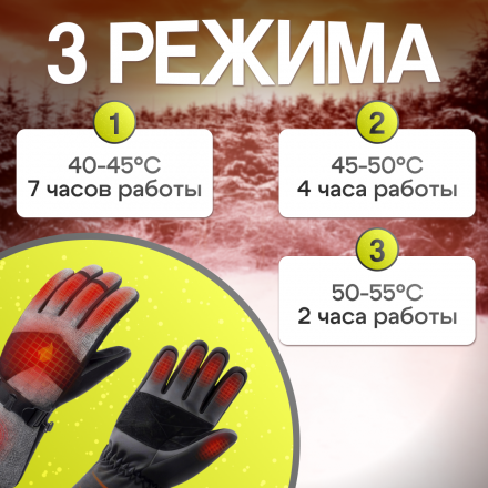 Перчатки с подогревом обеспечат Ваши руки теплом в холодное время года и сделают работу и отдых комфортными вне зависимости от температуры. Нагревательный элемент расположен над тыльной стороной ладони и вдоль контура пальцев.