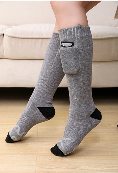 Нагревательные элементы расположены в передней части носка непосредственно над пальцами. Так как ноги обычно начинают замерзать именно с пальцев, то носки с подогревом способны предотвратить само начало замерзания ног, сохраняя полноценное кровоснабжение стопы. Перезаряжаемые аккумуляторные батареи рассчитаны на более 500 циклов заряда-разряда и значительно выгоднее батареек при регулярном использовании данного товара. Аккумуляторы размещаются в кармане носка. На батарее имеется клавиша вкл/вык.